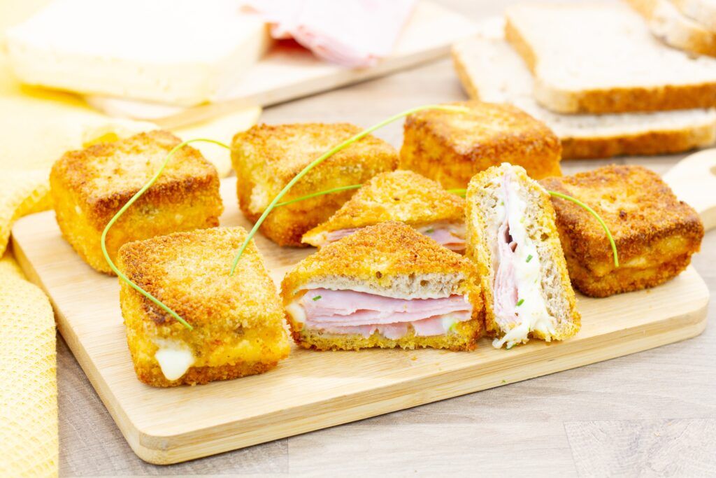 Smażone mini kanapki w panierce z jajka i bułki tartej to doskonały…
