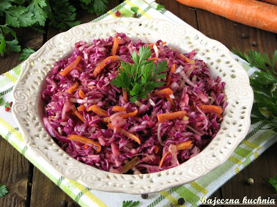 Bardzo smaczna surówka do obiadu z czerwonej kapusty, marchewki oraz pora, często…