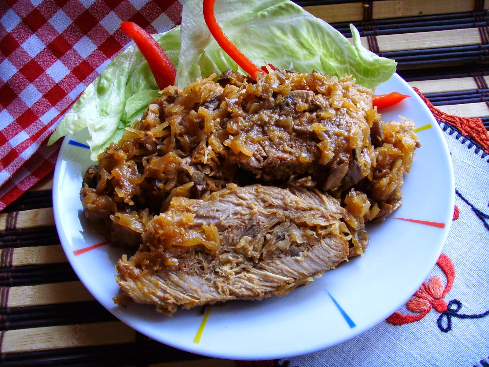 Karkówka pieczona w kapuście kiszonej z dodatkiem pieczarek to doskonałe danie na…