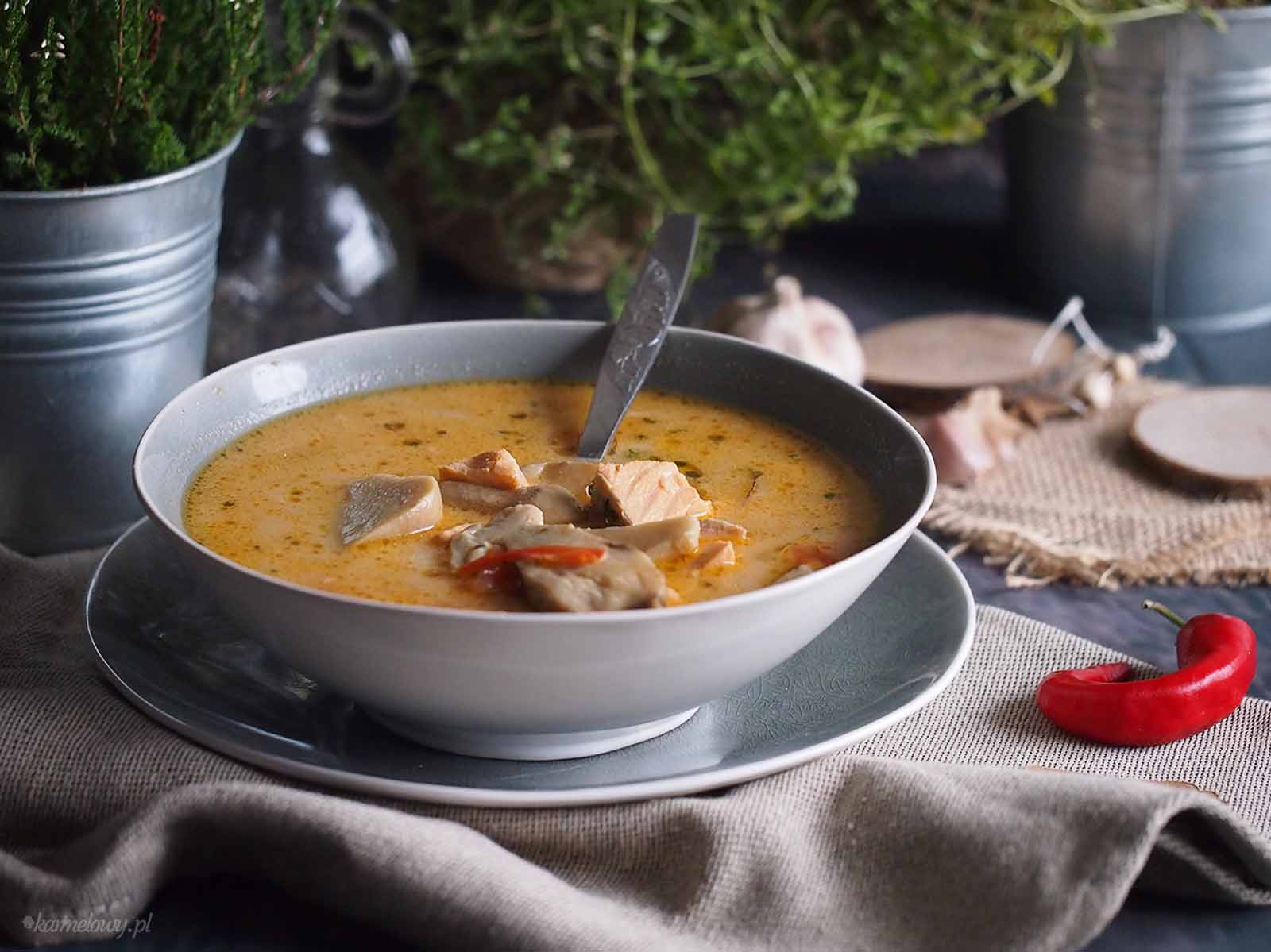 Pikantna zupa grzybowa z łososiem / Spicy mushroom soup with salmon