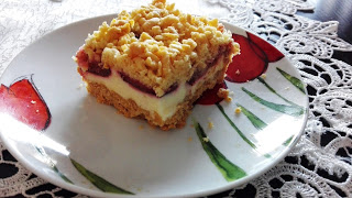 Kruche ciasto z budyniową pianką ze śliwkami
