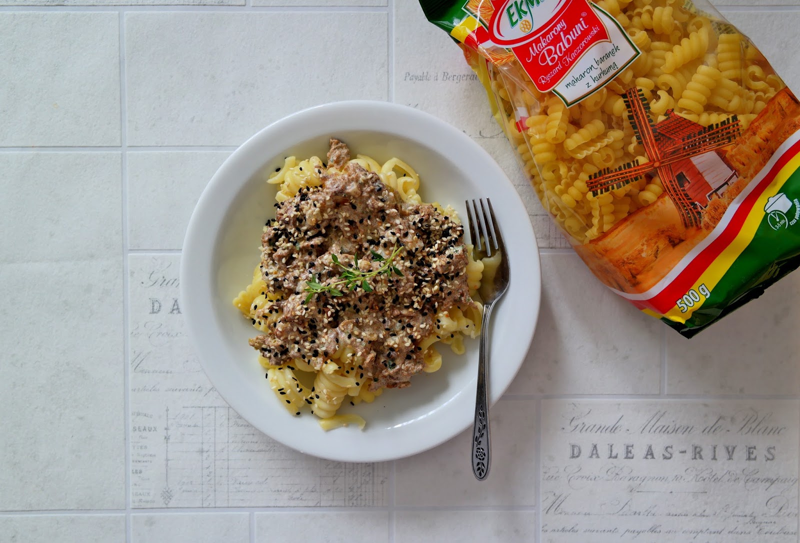 Makaron z sosem z kurek