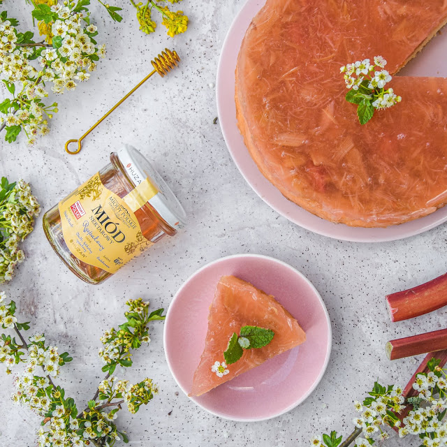 Ciasto z galaretką rabarbarową słodzoną miodem