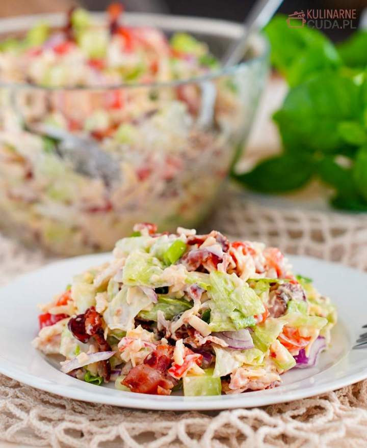 Sałatka z serem cheddar i boczkiem to pyszna propozycja na szybką przekąskę na każdą okazję. Chrupiący boczek w połączeniu z delikatnym serem cheddar, świeżymi warzywami i delikatnym sosem tworzy wyjątkową kompozycję smaków, która z na pewno przypadnie do gustu każdemu.