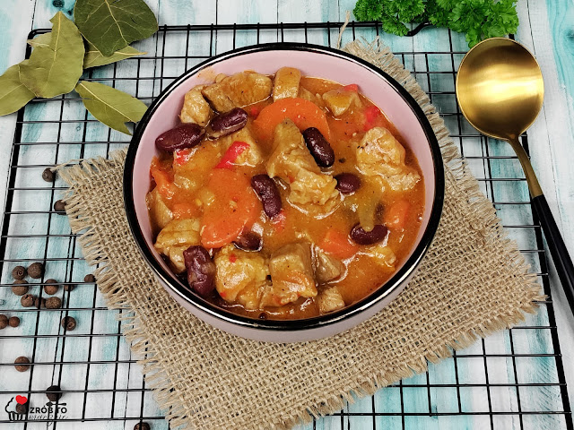 GULASZ Z KARKÓWKI Z CZERWONĄ FASOLĄ W SOSIE POMIDOROWYM
