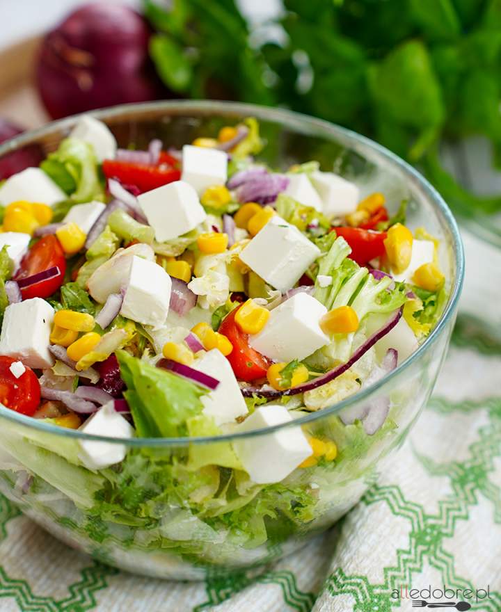 Sałatka z fetą to idealna propozycja na lekki, zdrowy posiłek. Sałatkę można podawać samą, a także jako dodatek do obiadu czy przekąsek z grilla. Ta sałatka z fetą idealnie sprawdzi się zarówno na szybki lunch, jak i na imprezową przekąskę. Połączenie świeżych warzyw ze słonym serem