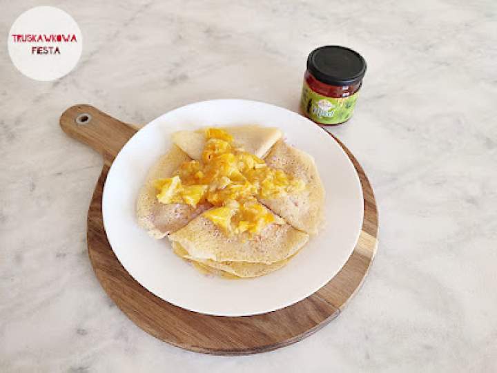 Rewelacyjne, lekkie i bardzo sycące naleśniki z wykorzystaniem mąki ziemniaczanej. Nadzienie wypełnia prażony banan, pomarańcza i mandarynka, a dodatkowo wysokobiałkowy jogurt. Całość polana