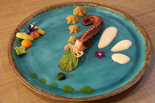 Ośmiornica z amarantusem i musem z korzenia Yam