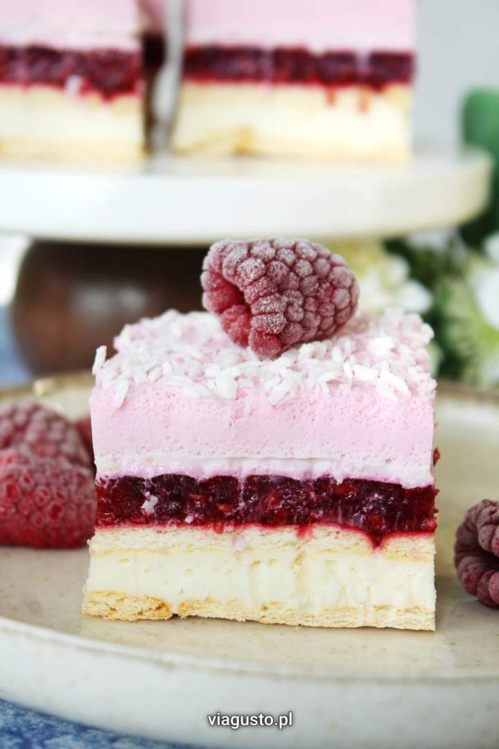 Ciasto kokosowe z malinami to proste ciasto bez pieczenia z galaretką. Ciasto składa się z kilku warstw, które łączą się w przepyszną całość. Ciasto sprawdzi się na każdą okazję! Będzie świetnym dodatkiem do kawy, a także deserem na imprezach, spotkaniach, czy rodzinnych uroczystościach.