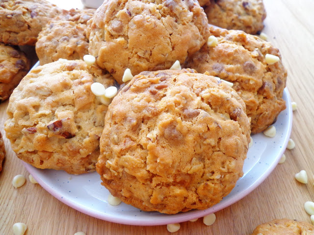 Ciasteczka z białą czekoladą, migdałami i płatkami owsianymi (Biscotti con mandorle, fiocchi d'avena e cioccolato bianco)