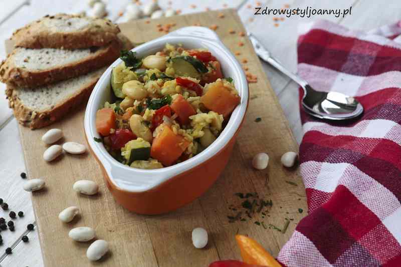 Wegańska potrawka z soczewicy i fasoli.