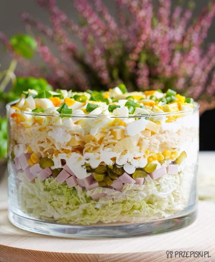 Sałatka bogactwo smaków to pyszna sałatka warstwowa, która z pewnością Was zachwyci! Ta sałatka to prawdziwa uczta dla podniebienia i fajna dekoracja stołu.