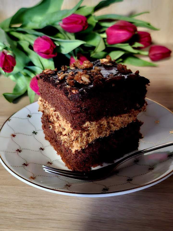 W mojej bezglutenowej wersji łączy w sobie karmelizowany, chrupiący słonecznik, aksamitną masę z kajmakiem i pyszną polewę kakaową,