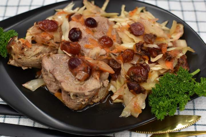 Delikatne polędwiczki zapiekane z kapustą i żurawiną