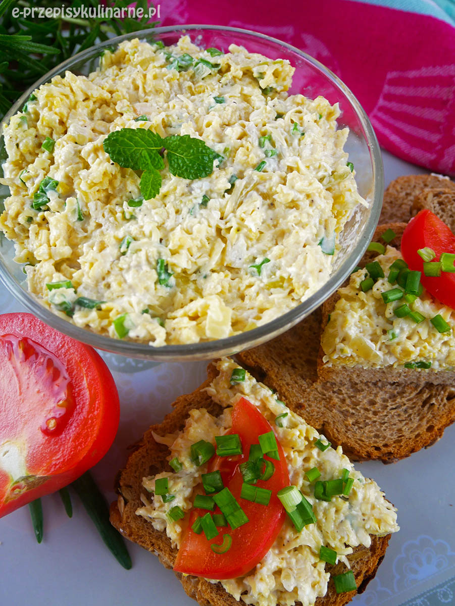 Wiosenny powiew na talerzu? Jest to zdecydowanie ta sałatka, chociaż nie do końca jest to sałatka, ale na pewno coś przecudownie pysznego. Takie jaja na twardo na pierzynce z kremowej fety z dodatkiem świeżego ogórka, rzodkiewki, szczypiorku oraz koperku mogą zostać podane jako jedno-dwuosobowe wyśmienite śniadanie. Na Wielkanoc można
