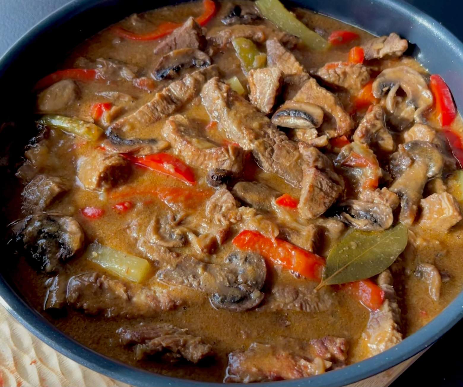 Strogonow z winem i pieczarkami Jeden z najsmaczniejszych obiadów jednogarnkowych. Kruche mięso…