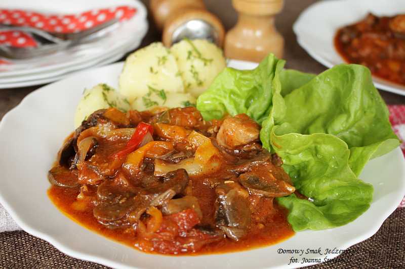 składniki: 750 g mięsa cielęcego (łopatka) 2 papryki żółte 1 papryka czerwona…
