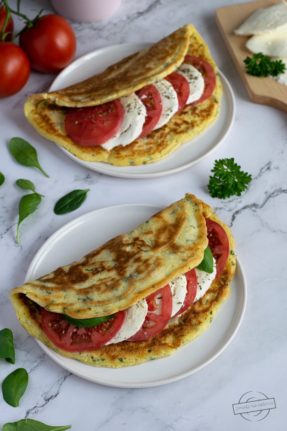 Grubsze niż tradycyjne, naleśniki biszkoptowe z dodatkiem świeżego szpinaku. Do tego plastry…