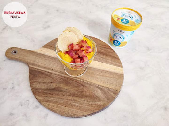 Składniki:125 g sorbetu z mango50 g świeżej śliwki20 g goferków