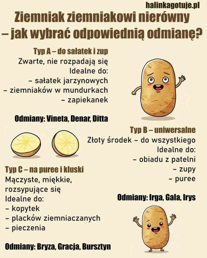 Witajcie kochani moi! Z tej strony Wasza Halinka. Dzisiaj pogadamy sobie o czymś tak zwyczajnym, a jednak tak ważnym w naszej kuchni – o ziemniakach, czyli o kartofelkach, jak to u nas mówią. Niby jeden taki do drugiego podobny, a prawda jest taka, że odmian mamy co niemiara i każda