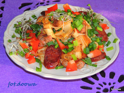 Naleśnikowy makaron z chorizo