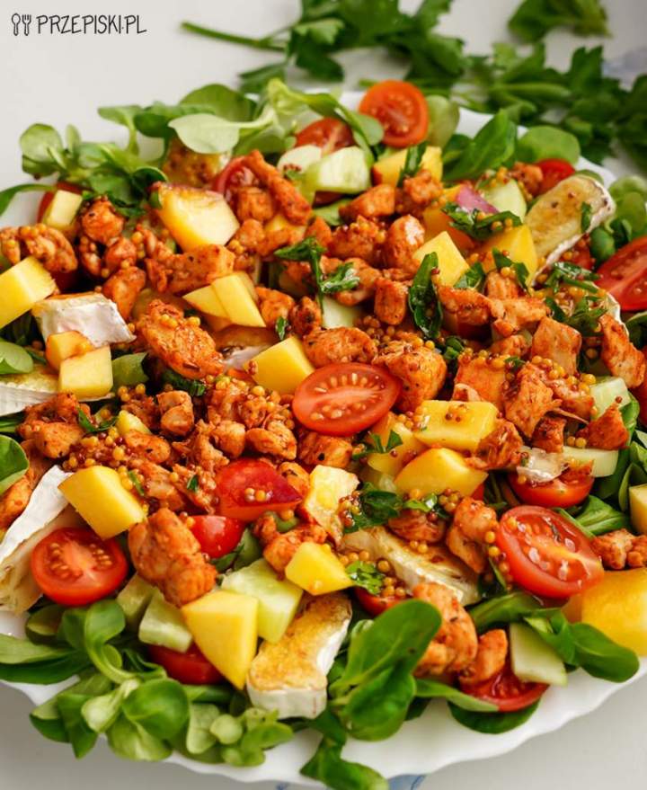 Sałatka z kurczakiem, camembertem i brzoskwinią