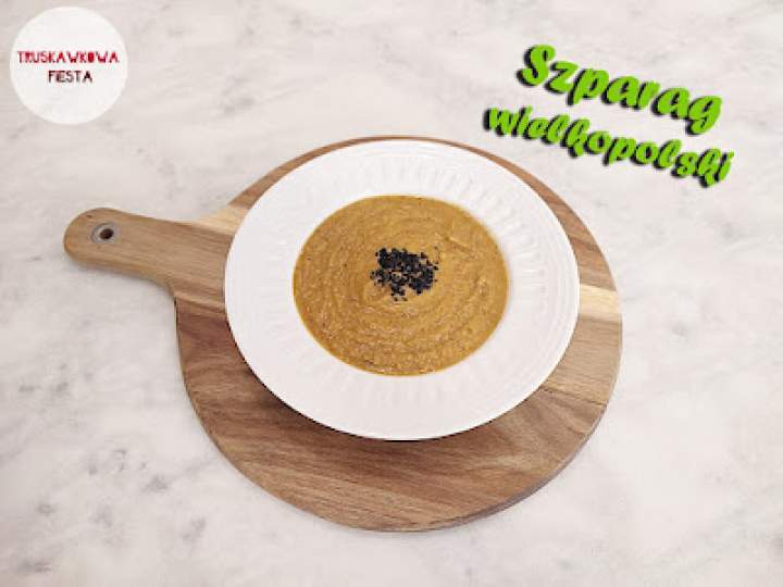 Zupa krem z białych szparagów, batata, marchewki, pietruszki i serc drobiowych