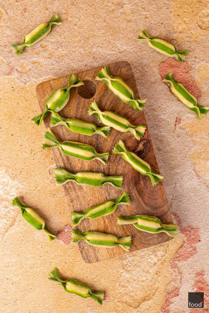 Caramelle oznacza z włoskiego cukierki. Jednakże niech nie zwiodą Was pozory, bo to także nazwa oryginalnego makaronu, który przypomina je tylko kształtem i zdecydowanie serwuje się go na wytrawnie. Samo pochodzenie tego typu makaronu nie jest do końca jasne, jednakże przypuszcza się, że powstał w Emilii-Romanii, gdzie często gości na