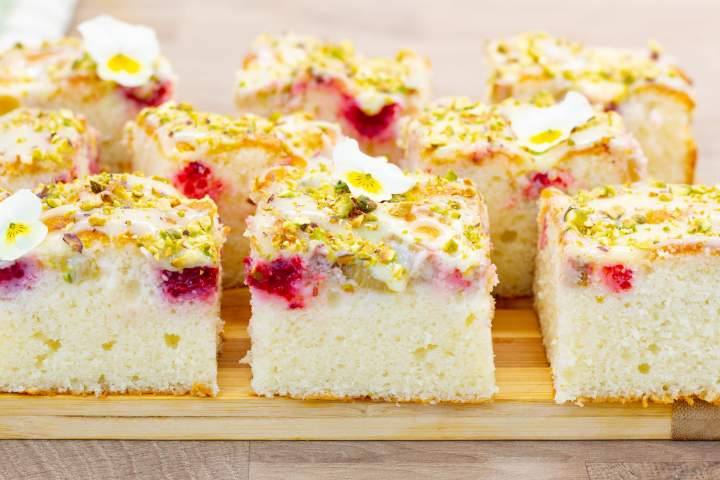 Ciasto jogurtowe z malinami i rabarbarem