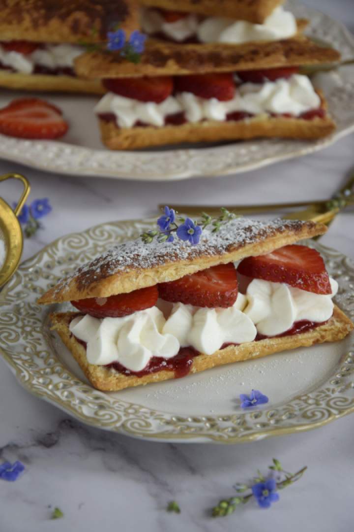 Ciasteczka francuskie z serowym nadzieniem i truskawkami