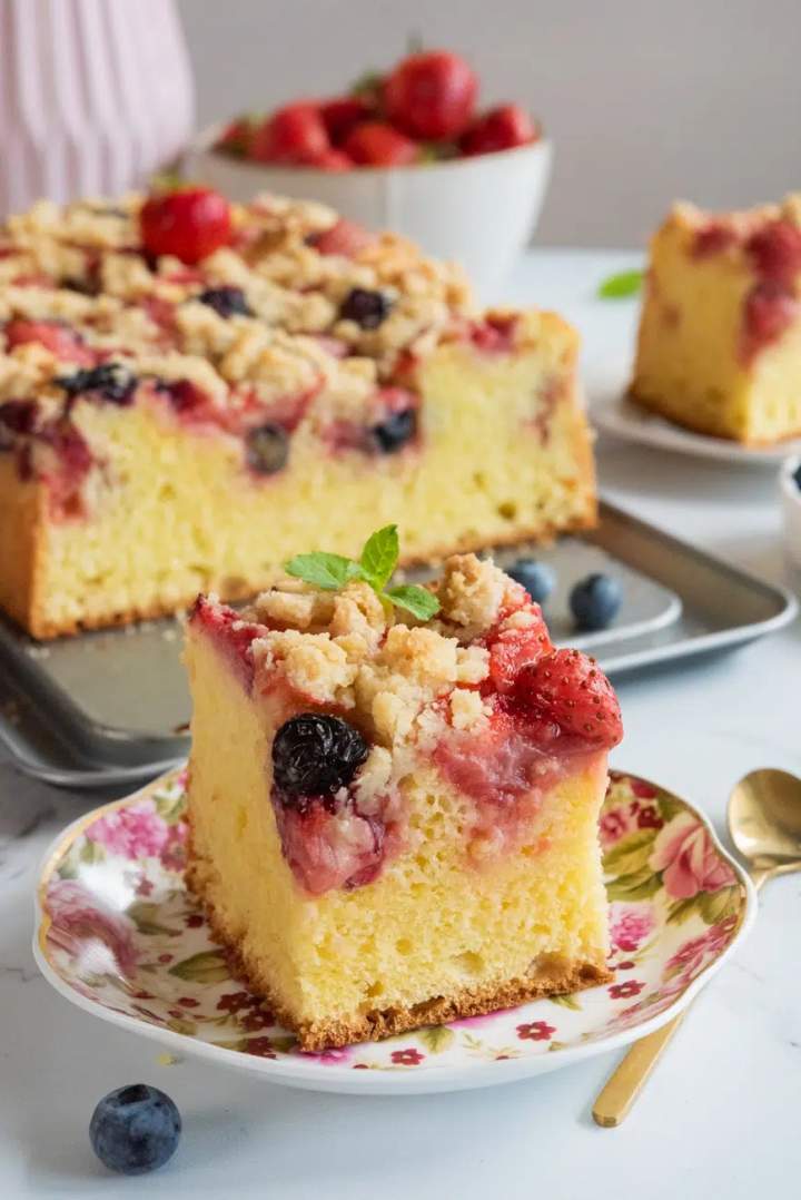Ciasto drożdżowe z truskawkami i maślaną kruszonką jest niezwykle mięciutkie, delikatne i rozpływające się w ustach. Uwielbiam je jeść zaraz po wyjęciu z piekarnika i lekkim ostygnięciu. Jak dla mnie nie ma nic lepszego. Można je przygotować z dowolnymi owocami jak maliny, borówki, jagody, jeżyny, wiśnie, brzoskwinie it.