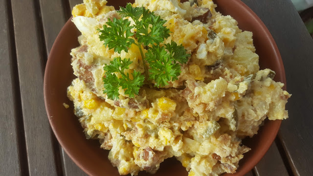 Sałatka z młodych ziemniaków,ogórków małosolnych i prazonej cebulki