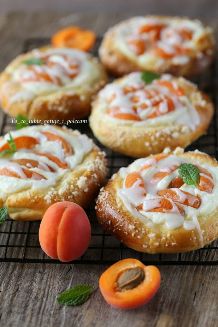 Przepis na pyszne drożdżówki. Drożdżówki z serem i owocami, tym razem z morelami. Puszyste, delikatne drożdżówki 🙂 Pyszne, puchate bułeczki, idealne do kawy.