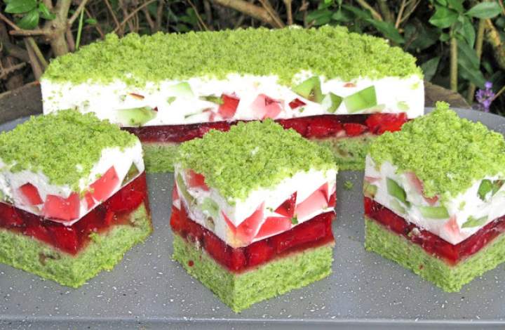 Cześć Kochani, zapraszam na kolejne wspaniałe ciasto, tym razem to ciasto, które nazwałam Leśny Skrzat to trochę urozmaicona wersja ciasta Leśny Mech, tym razem z truskawkami i śmietankową pianką z zatopionymi w niej kawałkami kolorowych galaretek.