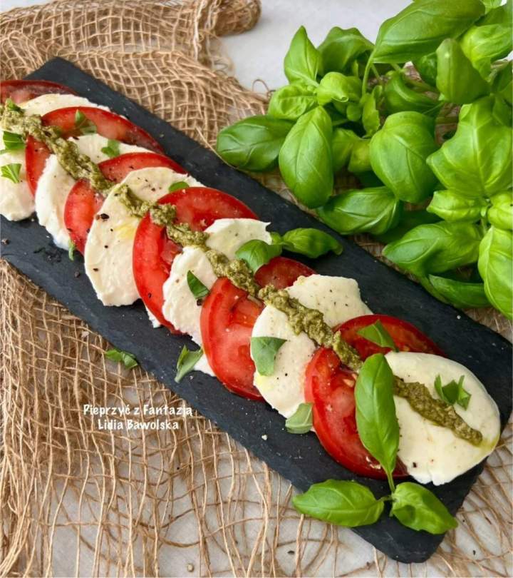 Sałatka caprese z pesto – letni przepis z pomidorami i mozzarellą