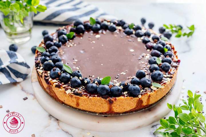 Przepis na tartę sernikową z borówkami i czekoladową polewą