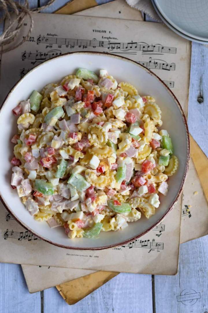 Czasami wystarczy otworzyć lodówkę, spojrzeć na szynkę, jajka i ser żółty, w myślach dołożyć do tego makaron i wiadomo już co będzie na kolację – sałatka makaronowa z szynką i ogórkiem. Mam wielką słabość do takich sałatek. Zresztą, moi bliscy tak samo.