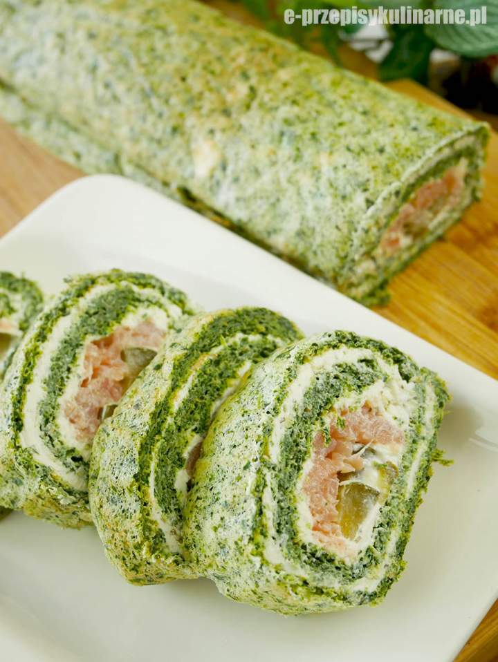 Rolada szpinakowa z łososiem to efektowna i jednocześnie bardzo prosta w przygotowaniu przekąska, która świetnie sprawdzi się na różnego rodzaju przyjęciach, świętach czy domowych uroczystościach. Połączenie delikatnego, wilgotnego szpinakowego biszkoptu z kremowym serkiem i wędzonym łososiem smakuje wyśmienicie i pięknie prezentuje się na stole. Dzięki ogórkom konserwowym danie