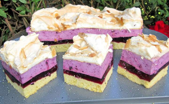 Cześć Kochani, dziś przychodzę do Was z przepisem na kolejny hit, rewelacyjne, piękne i przepyszne ciasto Jagodowa chmurka 🙂 Składa się z kruchego ciasta, galaretki, pianki z jagodami i delikatnej, chrupiącej bezy z płatkami migdałów. Jest wspaniałe delikatne, po prostu musicie je zrobić 🙂 Wygląda niezwykle pięknie, elegancko czy