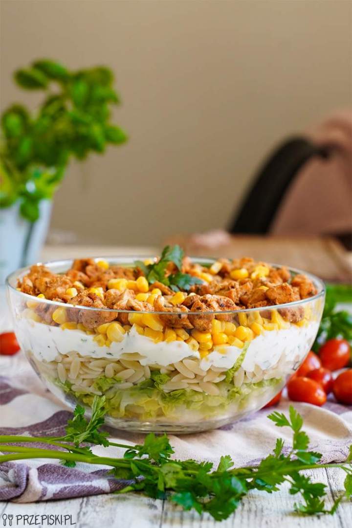 Poznaj nasz przepis na sałatkę warstwową z kurczakiem, która skradnie serca Twoich gości. Idealna na wyjątkowe okazje – wygląda zjawiskowo, smakuje jeszcze lepiej!