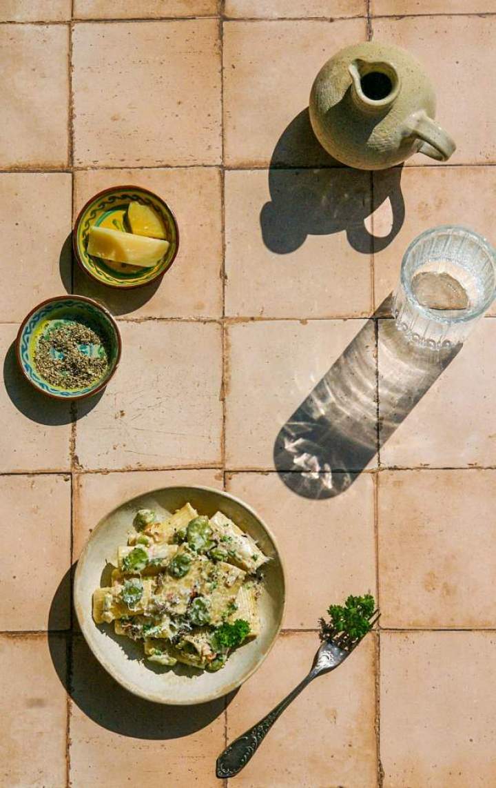 Makaron z bobem i boczkiem