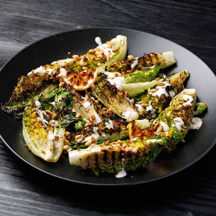 Grillowana sałata rzymska to szybka i oryginalna propozycja na letnią sałatkę do dań z grilla lub jako lekka przystawka. Krótko grillowane liście sałaty nabierają wyrazistego smaku, lekko się karmelizują i zyskują chrupiącą teksturę. Całość świetnie komponuje się z kremowym sosem na bazie czosnku, majonezu i śmietany oraz prażonymi orzeszkami pinii.