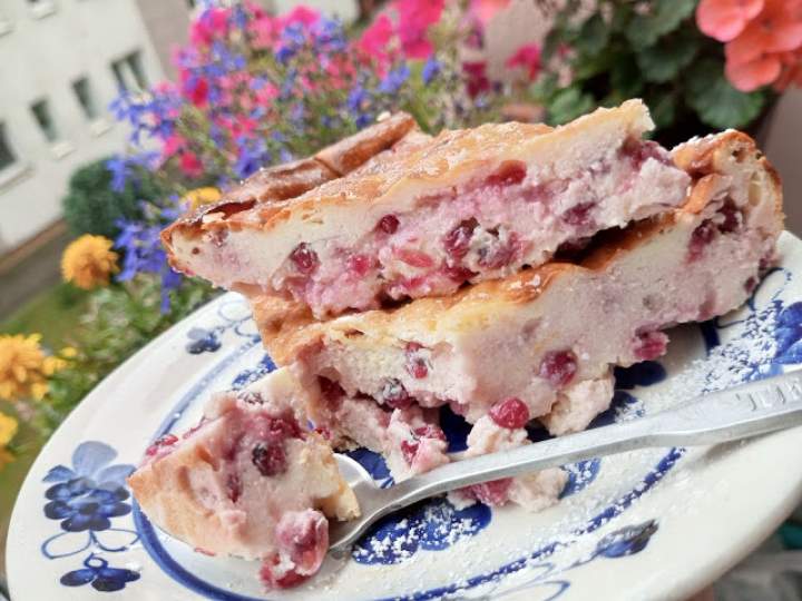 pyszny sernik z czerwoną porzeczką…