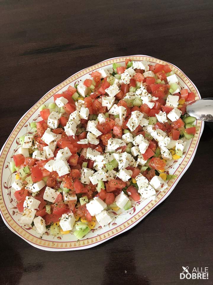 Sałatka z fetą i warzywami jest bardzo smaczna i uniwersalna. Świetnie odnajdzie się zarówno jako samodzielne danie, jak i dodatek do obiadu lub dań z grilla. Jeśli szukacie pomysłu na