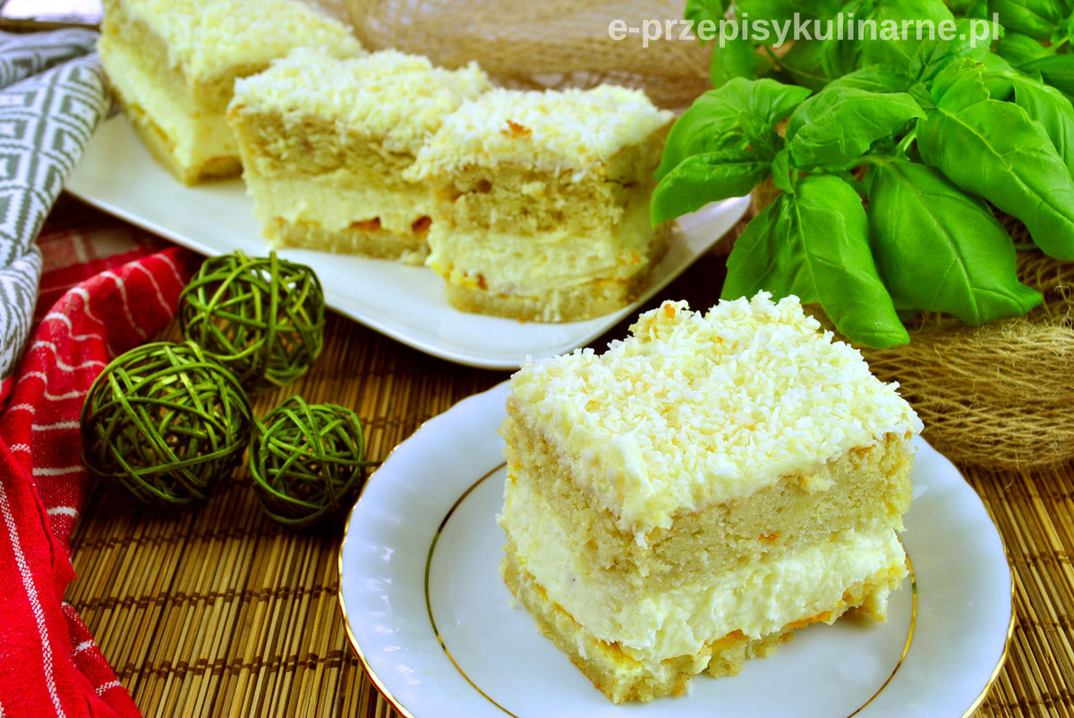 Ciasto Kokosowa Blondynka z dżemem brzoskwiniowym i masą budyniową to prawdziwy rarytas.…