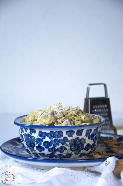 Makaron z cukinią i pieczarkami