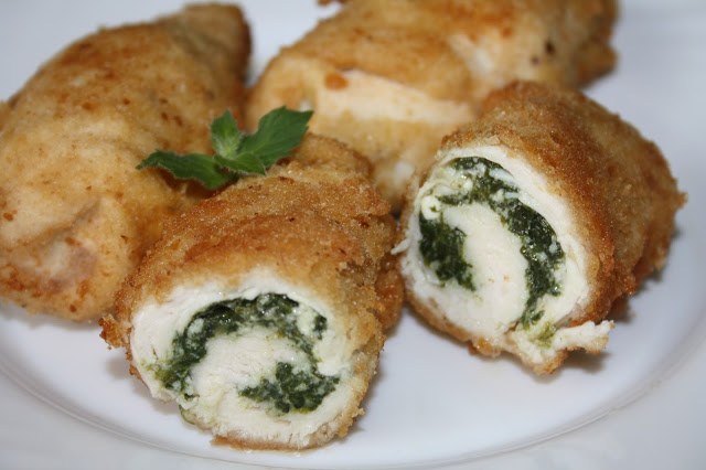 Moje ulubione połączenie mięsa drobiowego. Koniecznie ze szpinakiem.Dla urozmaicenia zamiast smażyć roladki…