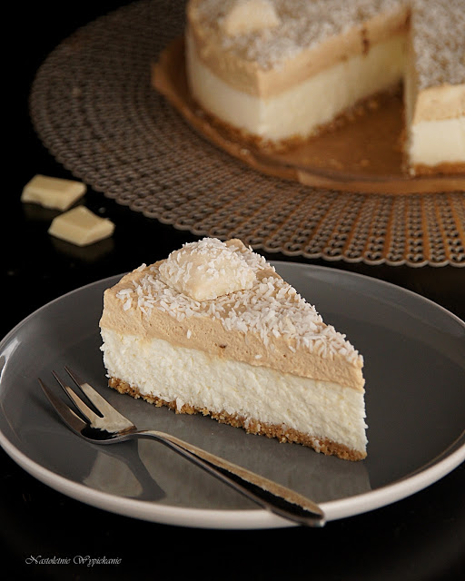 Kokosowa odsłona sernika na zimno na spodzie z maślanych kruchych ciasteczek. Niezwykły…