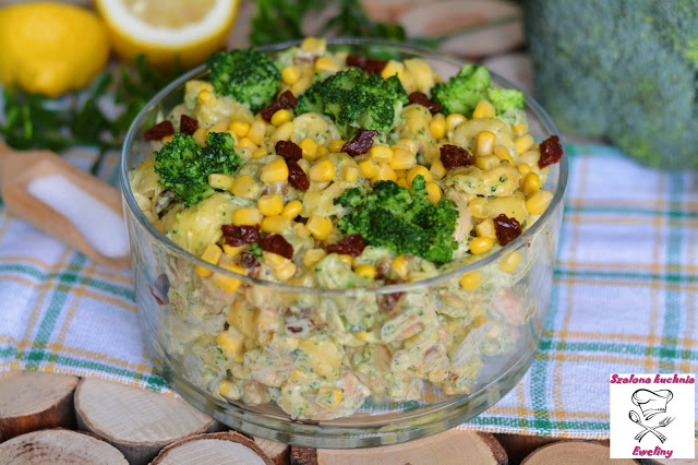 Szybka w przygotowaniu, smaczna sałatka z kurczaka, serowych pierożków, brokułu, kukurydzy oraz…