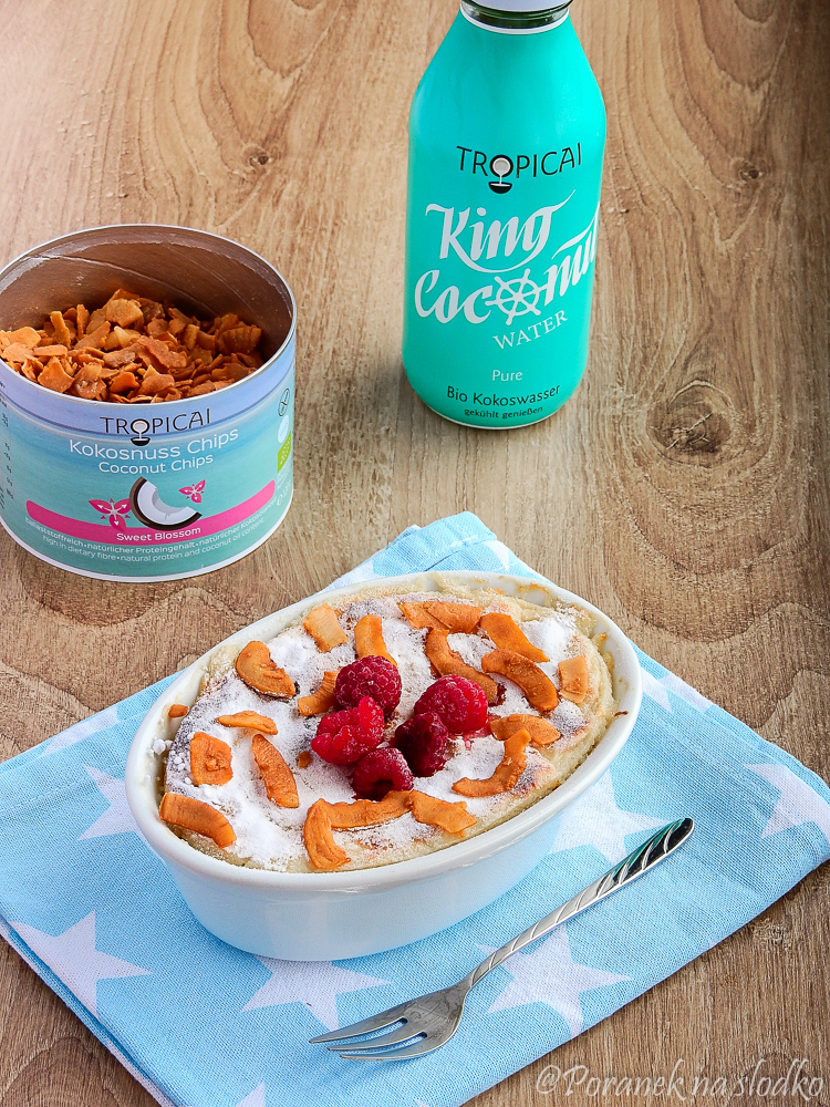 SERNICZEK KOKOSOWY/1 porcja/350 g twarogu sernikowego25 g mąki kokosowejduże jajkoszczypta solikilka kropli…